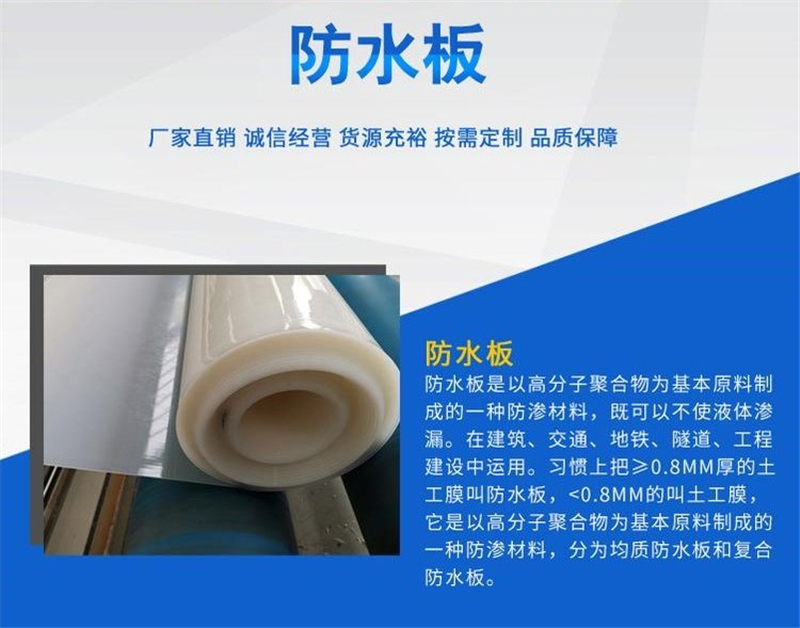 產(chǎn)品介紹: 防滲復(fù)合土工膜:復(fù)合土工膜是用土工織物與土工膜復(fù)合而成的不透水材料,它主要用于防滲,復(fù)合土工膜分為一布一膜和兩布一膜,抗拉、抗撕裂、頂破等物理力學(xué)性能指